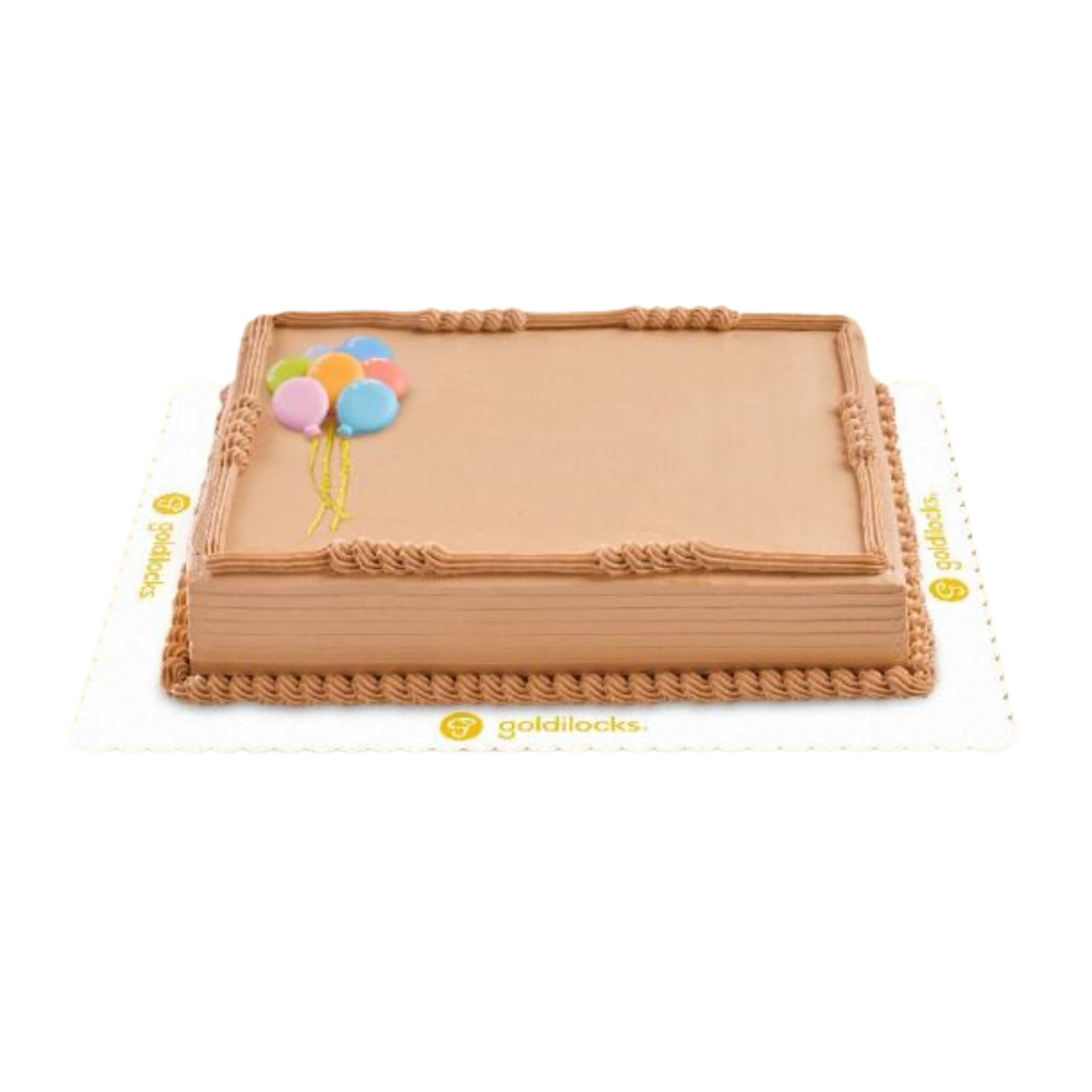 Mocha chiffon cake filled and iced with mocha buttercreme icing topped with colorful blooms.